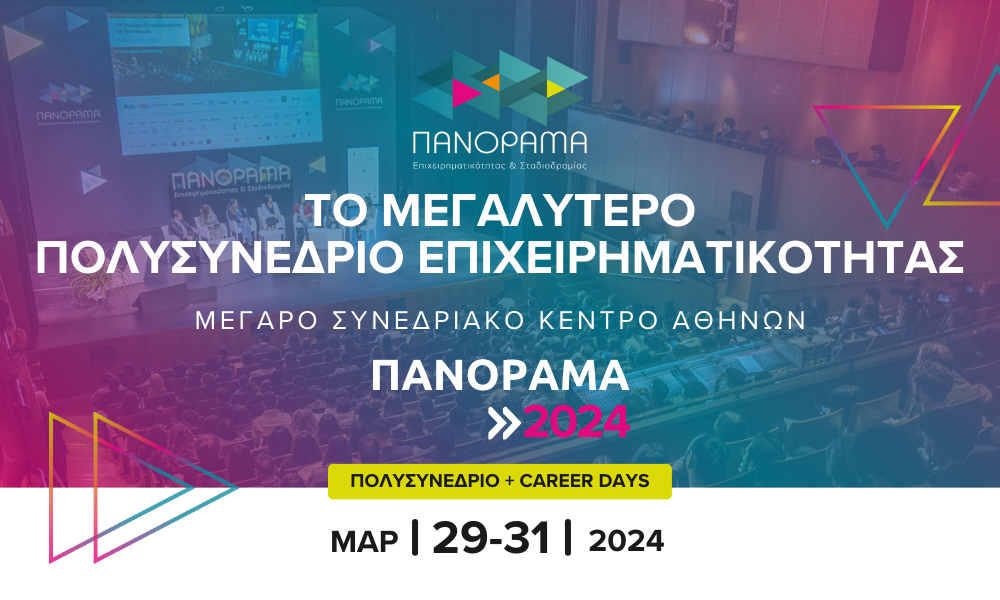 Το «Πανόραμα Επιχειρηματικότητας και Σταδιοδρομίας», το μεγαλύτερο πολυσυνέδριο για την επιχειρηματικότητα και την απασχόληση των νέων, μετρά 14 χρόνια επιτυχούς παρουσίας, αναδεικνύοντας νέες επαγγελματικές ευκαιρίες σε σημαντικούς κλάδους και τομείς της οικονομίας μας.