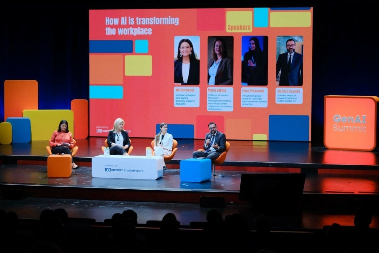 Το μέλλον της εργασίας στην Ελλάδα και πώς αλλάζει με την υιοθέτηση της Τεχνητής Νοημοσύνης (ΤΝ) εξέτασε η συζήτηση μεταξύ της υπουργού Εργασίας και Κοινωνικής Ασφάλισης Νίκης Κεραμέως, του πρώην υπουργού και Εταίρου της EY (Ernst and Young) Ελλάδος Χρήστου Ταραντίλη, της κυρίας Μαρίας Βακόλα, καθηγήτριας και διευθύντριας του Μεταπτυχιακού Προγράμματος στη Διοίκηση Ανθρώπινου Δυναμικού στο Οικονομικό Πανεπιστήμιο Αθηνών, και της κυρίας Έλενας Πιτταροκοίλη, Analytics Engineer στην εταιρεία Age of Learning στην Καλιφόρνια των ΗΠΑ.
