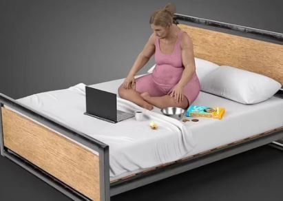 Η εργασία από το κρεβάτι έχει επιβαρύνει την Άννα, η οποία έχει μια καμπουριασμένη πλάτη με σηκωμένους ώμους, ενώ το να κοιτάζει όλη μέρα μια οθόνη την έχει οδηγήσει να έχει μονίμως κόκκινα, πρησμένα μάτια.