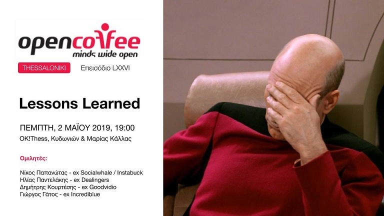 Κάτι τέτοιο, εντελώς ασυνήθιστο για τα ήθη και τα έθιμα του Open Coffee επιχειρείται στην Θεσσαλονίκη την Πέμπτη 2 Μαΐου. Στο φιλόξενο χώρο του OK!Thess 4 Θεσσαλονικείς θα βρεθούν ενώπιον του ακροατηρίου για να αφηγηθούν τις αποτυχίες τους. Από ανάρτηση του Δημήτρη Κουρτέση στο fb διαβάζω και μαθαίνω: Την Πέμπτη 2 Μαϊου, στο OKThess, με τους φίλους Nick Papanotas, Ilias Pantelakis και Georgios Gatos, μοιραζόμαστε παθήματα και μαθήματα από startups που ξεκινήσαμε και (έκπληξη;) δεν εξελίχθηκαν όπως περιμέναμε!
