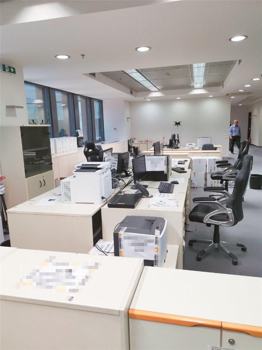 Τα στοιβαγμένα γραφεία των εργαζομένων, στο νέο κτίριο της εθνικής οδού δεν συγκρίνονται φυσικά με την άνεση και την προσεγμένη ξύλινη επένδυση του νέου γραφείου της διοίκησης του ΑΔΜΗΕ