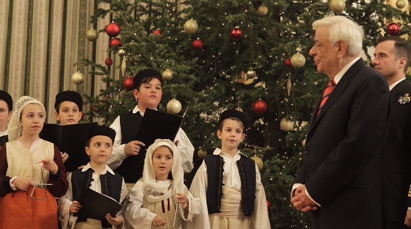 Εν συνεχεία, το Προεδρικό Μέγαρο γέμισε με παιδικές φωνές, καθώς τα παιδιά από το Καλογεροπούλειο Ίδρυμα, έψαλαν βυζαντινά και κυκλαδίτικα κάλαντα και έστειλαν το δικό τους μήνυμα ανθρωπιάς και ευαισθησίας για τα Χριστούγεννα.