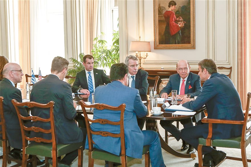 Ο υπουργός Εμπορίου των ΗΠΑ Γουίλμπουρ Ρος με τον πρωθυπουργό Κυριάκο Μητσοτάκη κατά την πρόσφατη συνάντησή τους στο Μέγαρο Μαξίμου