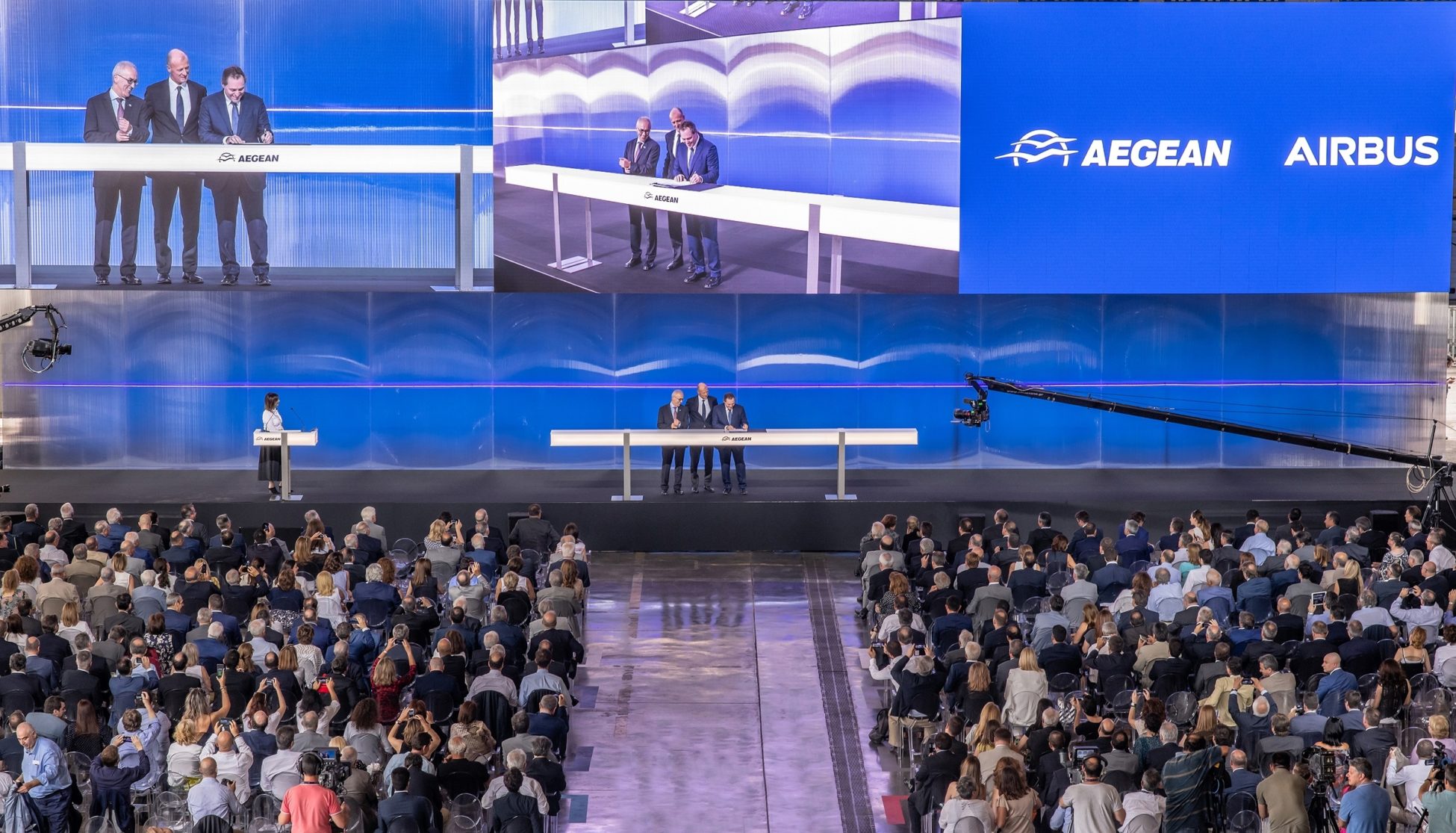 Παρουσία πλήθους επιχειρηματικού και πολιτικού κόσμου υπεγράφη η μεγάλη συμφωνία του ομίλου της Aegean για την παραγγελία των 30 με δικαίωμα για επιπλέον 12 αεροσκάφη από την Αirbus, αξίας καταλόγου έως 5 δισ. δολάρια.