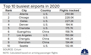 Η τάση αυτή αποτυπώθηκε στη λίστα με τα πιο πολυσύχναστα αεροδρόμια στον κόσμο, όπου κυριάρχησαν τα αεροδρόμια των ΗΠΑ και της Κίνας.