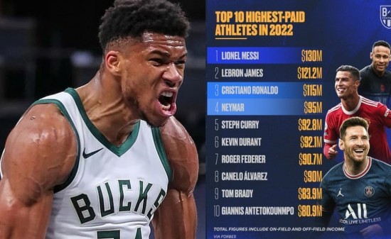 Το 2018 τα κέρδη των σταρ του αθλητισμού ήταν 1,06 δισ. δολάρια και πέρσι (2021) έφτασαν στο 1,05 δισ. δολάρια. Παράλληλα, τα 80,9 εκατ. δολάρια που χρειάστηκε ο Γιάννης Αντετοκούνμπο για να πάρει τη 10η θέση είναι νέο ρεκόρ, με τον πήχη να έχει ανέβει πιο ψηλά από ποτέ. Για την ακρίβεια, είναι 8% υψηλότερο από 75 εκατ. του 2021 και 24% από τα 65,4 εκατ. του 2019…