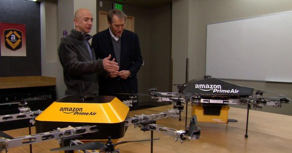 Ήταν 2013, όταν ο ιδρυτής και CEO της Amazon, Τζεφ Μπέζος, σε τηλεοπτική του συνέντευξη «υποσχόταν» ότι θα γεμίσει τους ουρανούς με έναν στόλο από drones, τα οποία θα παραδίδουν τα πακέτα στα σπίτια των πελατών σε μισή ώρα από την παραγγελία. Ο δισεκατομμυριούχος προέβλεπε ότι οι παραδόσεις με drones θα ξεκίναγαν εντός πενταετίας.