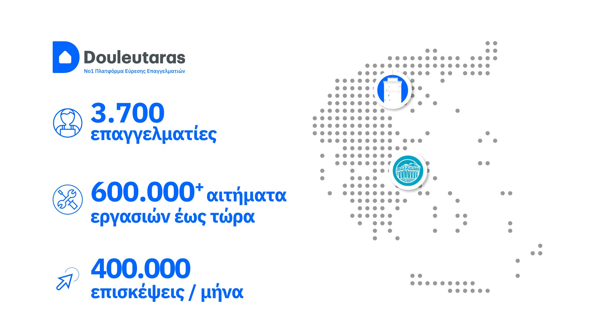 Έχοντας ήδη διαχειριστεί περισσότερα από 600.000 αιτήματα εργασιών (από επισκευές ηλεκτρολογικές/υδραυλικές, διάφορες βελτιωτικές εργασίες για το σπίτι, μετακομίσεις, συντήρηση κλιματισμών, καθαρισμούς κ.α.) από την ίδρυσή του το 2015 μέχρι σήμερα και με 400.000 επισκέψεις ανά μήνα, το douleutaras.gr συνεχίζει να «ανεβαίνει» εξήγησε ο κ. Γραμμάτης. Οι συνεργαζόμενοι επαγγελματίες – τεχνίτες έχουν φθάσει πλέον τους 3.700 καλύπτοντας 90 διαφορετικές ειδικότητες ενώ στην ίδια την εταιρεία πλέον οι εργαζόμενοι έχουν φθάσει τους 44.