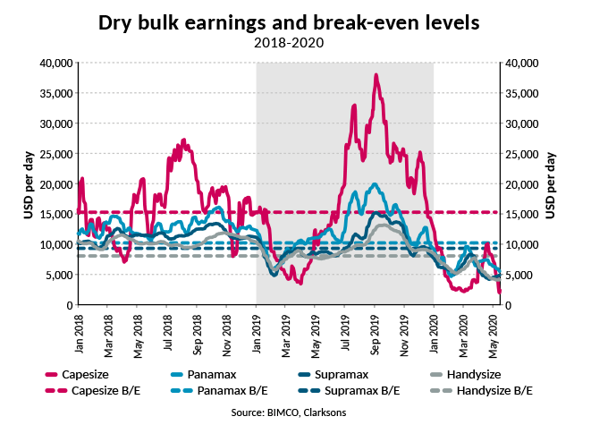 Η BIMCO προέβλεπε προηγουμένως ότι οι ναύλοι θα ήταν σε ζημιογόνο έδαφος το 2020, τώρα ωστόσο προβλέπει ότι θα σημειωθεί περαιτέρω επιδείνωση από την πλευρά της ζήτησης λόγω πανδημίας.