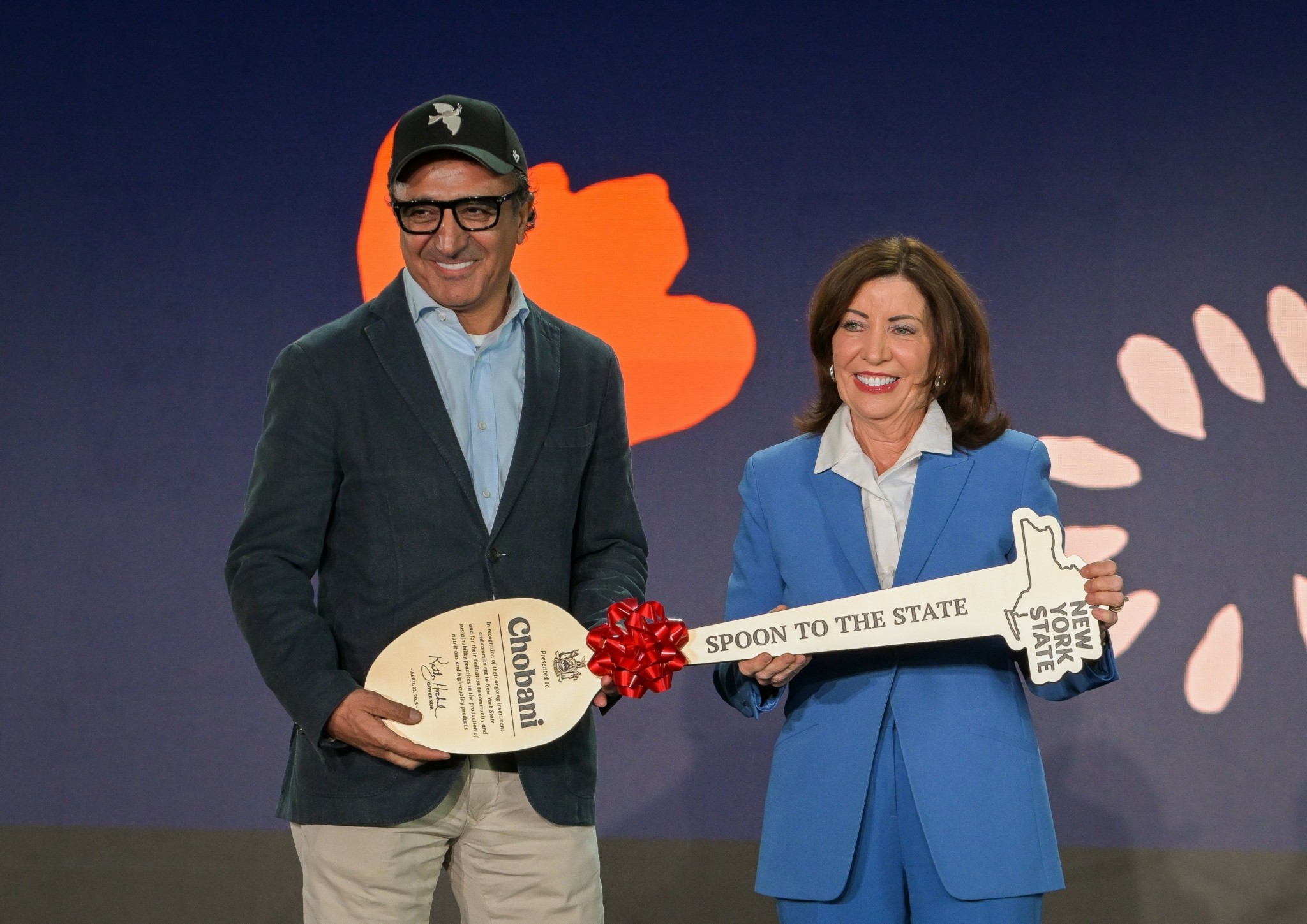 κεντρική φωτογραφία: Ο ιδρυτής της Chobani Χαμντί Ουλουκάγια και η κυβερνήτης της Νέας Υόρκης Κάθι Χότσουλ στα εγκαίνια της κατασκευής του νέου εργοστασίου στη Ρώμη της Ν. Υόρκης, 24 Απριλίου 2025, πηγή: @hamdiulukaya