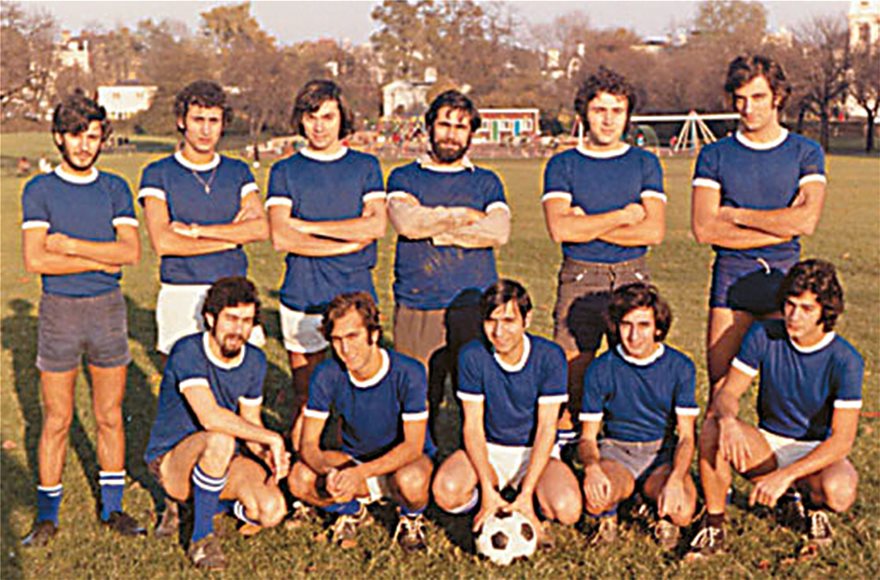Η εντεκάδα της ποδοσφαιρικής ομάδας Ελλήνων και Κύπριων φοιτητών στο London School of Economics (LSE). Ο Χριστόφορος Πισσαρίδης είναι όρθιος, τρίτος από αριστερά