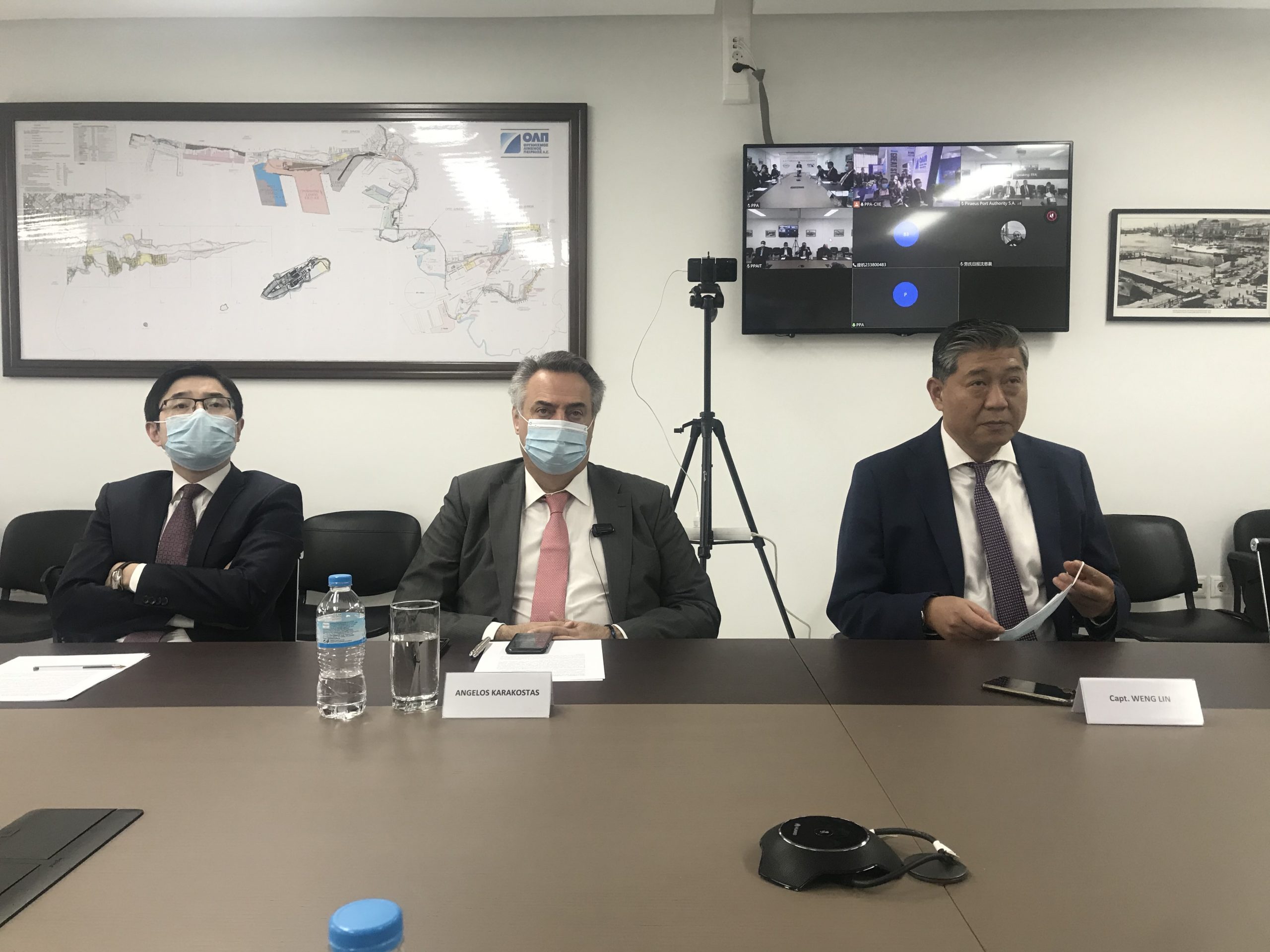 Όλα ειπώθηκαν στη διάρκεια διαδικτυακής σύνδεσης με τη Σαγκάη όπου βρίσκεται σε εξέλιξη η 3η Διεθνής Έκθεση Εισαγωγών, όπου ΟΛΠ-Cosco έχουν περίπτερο.