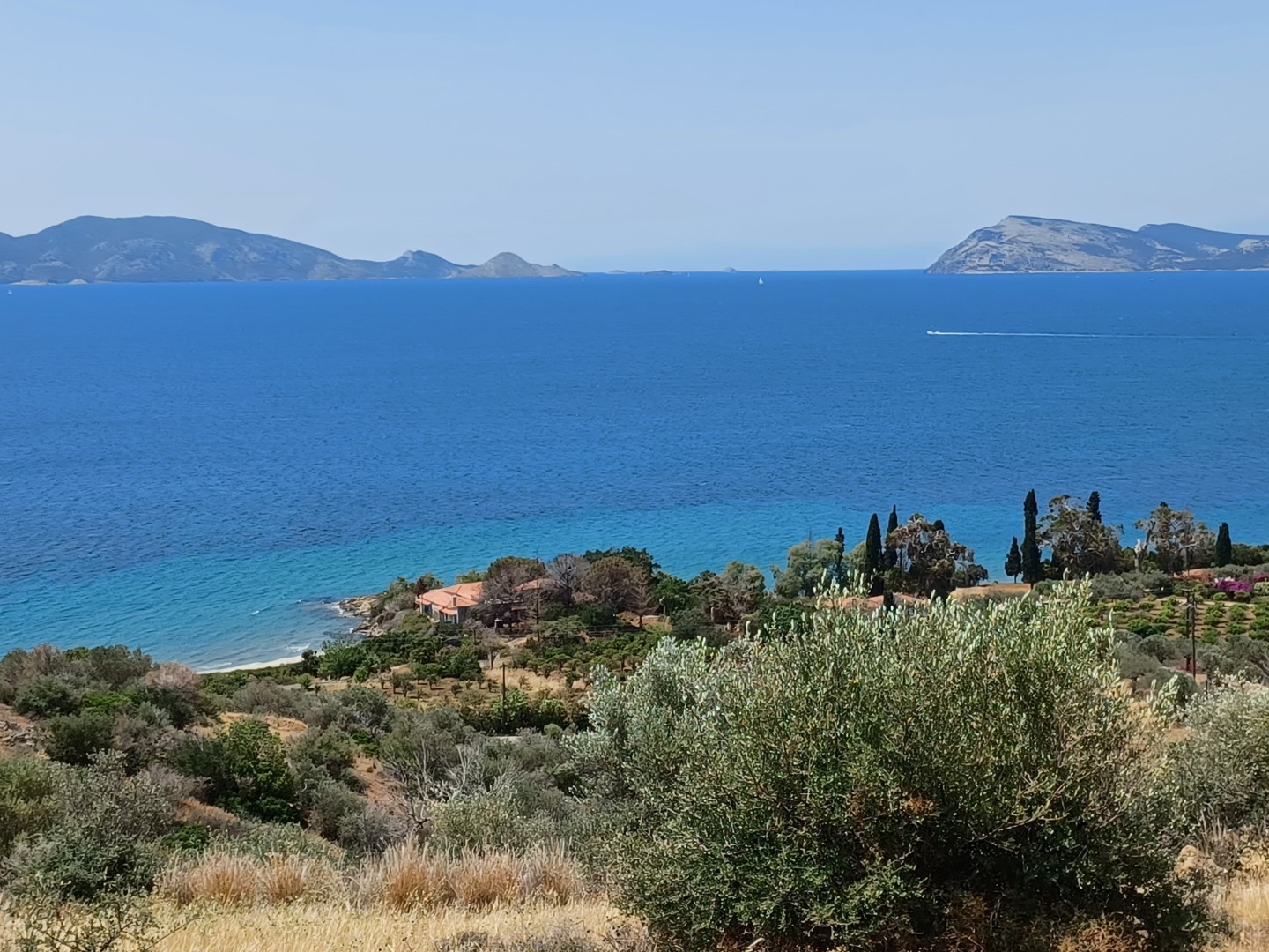 Αυτό το απαράμιλλης ομορφιάς κτήμα του Δ. Κοντομηνά, που «αντικρύζει» την αγαπημένη του Ύδρα, έχει πρόσωπο στη θάλασσα (το παραθαλάσσιο τμήμα καλύπτει έκταση 73.104 τ.μ.), ενώ χωρίζεται από το υπόλοιπο που αναπτύσσεται προς το βουνό, από την επαρχιακή οδό.