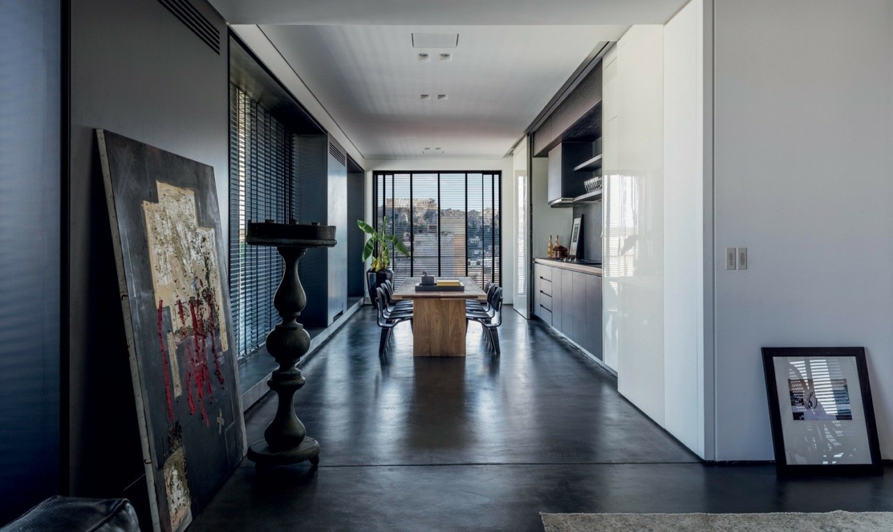 Ο,τι βρίσκεται στη συγκεκριμένη κατοικία είναι απόλυτα εναρμονισμένο με τη φιλοσοφία του χώρου. Οπως τα custom έπιπλα της Zege, η χαμηλή τραπεζαρία και το ασυνήθιστο κρεβάτι, που έχουν σχεδιαστεί έτσι ώστε να διατηρούν ανεμπόδιστη τη θέα προς την Ακρόπολη. Το interior design υιοθετεί τη λογική ενός γνήσιου loft με διαχρονικό και clean-cut χαρακτήρα, όπου το φως, τα υλικά και τα αντικείμενα λειτουργούν ως χρηστικά γλυπτά. Ολα μαζί συνθέτουν έναν ενιαίο, ήρεμο και ατμοσφαιρικό χώρο, μια όαση γαλήνης κι ας έχει φόντο το φασαριόζικο κέντρο.