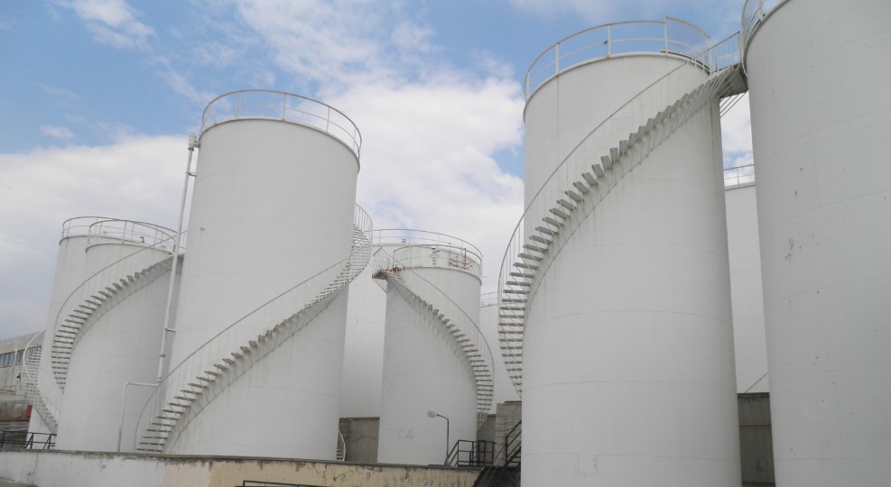 Η εγκατάσταση διαθέτει 16 δεξαμενές αποθήκευσης συνολικής χωρητικότητας 20.742 μ³ οι οποίες εδράζονται σε βάσεις από οπλισμένο σκυρόδεμα αυξημένης διατομής και οπλισμού λόγω μεγάλου βάρους των δεξαμενών όταν είναι γεμάτες. Περιμετρικά των δεξαμενών έχουν κατασκευασθεί λεκάνες ασφαλείας για τη συγκέντρωση των ομβρίων υδάτων καθώς και σύστημα συλλογής και διαχωρισμού των υγρών αποβλήτων.