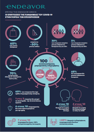 Στην έρευνα της Endeavor Greece, που ολοκληρώθηκε τη Δευτέρα 16 Μαρτίου, συμμετείχε δείγμα 100 ταχέως αναπτυσσόμενων μικρομεσαίων επιχειρήσεων, που έχουν τζίρο έως €80 εκατομμύρια, ενώ το 2019 πέτυχαν υψηλούς ρυθμούς ανάπτυξης που αγγίζουν το 100%.