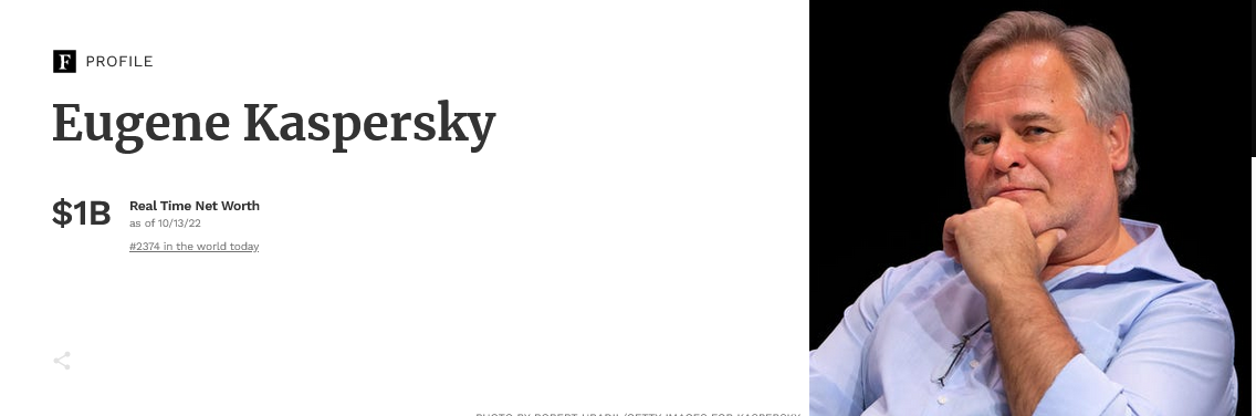 Δεν έμεινε «ατσαλάκωτος», ωστόσο, από τον πόλεμο της Ουκρανίας. Η ομάδα της Ferrari στην Formula 1 εφάρμοσε τα δικά της αντίποινα κατά του Ρώσου επιχειρηματία και έκοψε την εταιρεία του από τους χορηγούς της. Θεωρείται πρωτοπόρος στην επιστήμη του, καθώς άρχισε να δημιουργεί τα πρώτα του προγράμματα κατά των «ιών» στα early ‘90s, εποχή που οι περισσότεροι δεν γνώριζαν καν τι είναι το ίντερνετ.