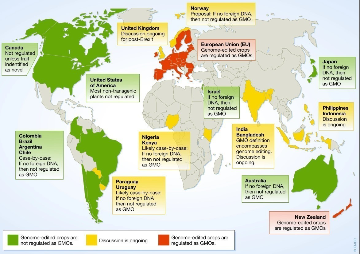 Το 2018 το Ευρωπαϊκό Δικαστήριο έκρινε ότι οι μέθοδοι επεξεργασίας γονιδιώματος, που περιλαμβάνουν και τα NGTs, εμπίπτουν στη νομοθεσία της ΕΕ του 2001 που διέπει – και πρακτικά απαγορεύει- τους ΓΤΟ.