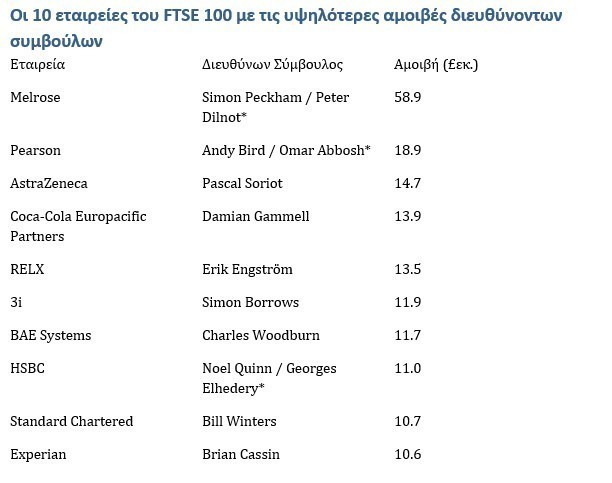Σημειωτέον πως ο μέσος Βρετανός εργαζόμενος πλήρους απασχόλησης κέρδισε πέρυσι 37.430 στερλίνες, δηλαδή 122 φορές λιγότερα από τον τυπικό CEO του δείκτη FTSE 100.