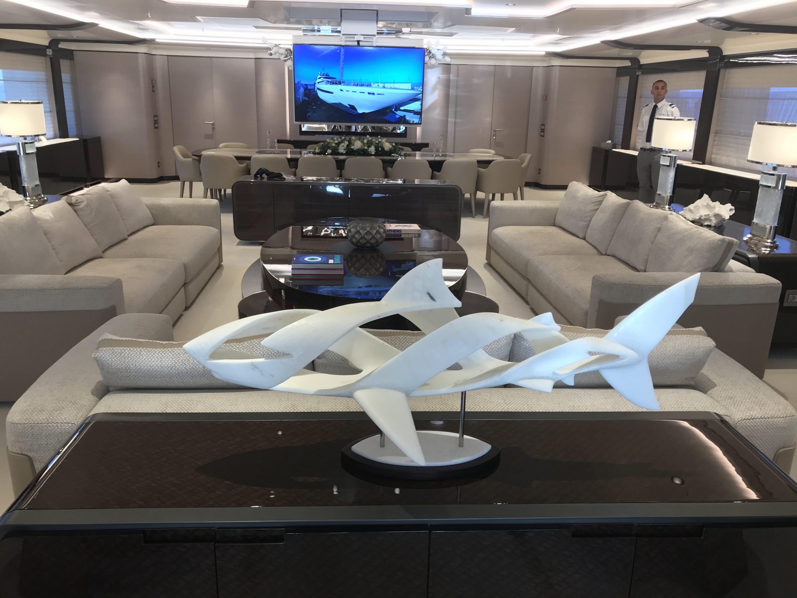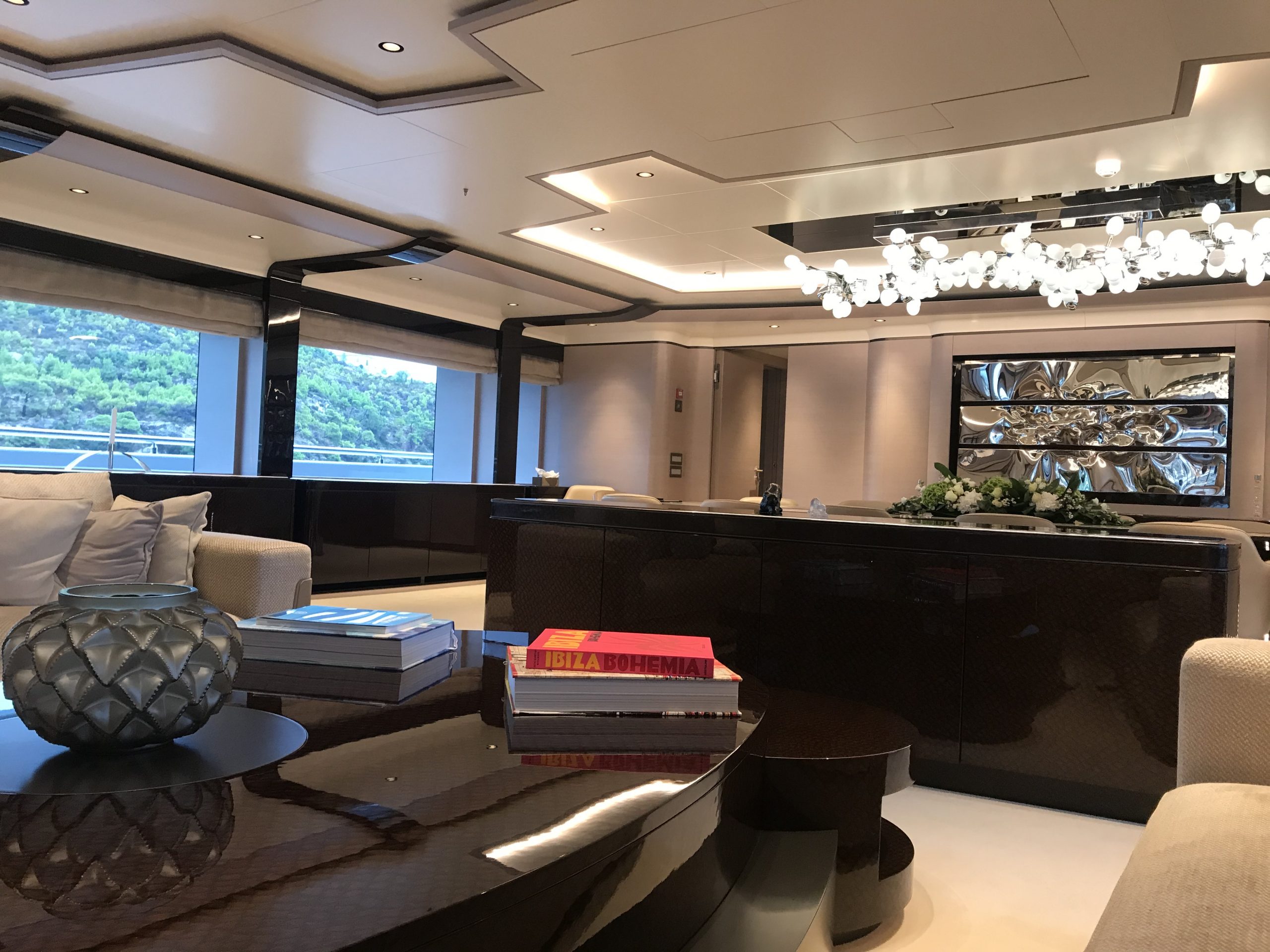 Καθίσαμε στο σαλόνι του πρώτου καταστρώματος, το οποίο είναι διακοσμημένο με έργα κυρίως μοντέρνα τέχνης, Ελλήνων, Αμερικάνων και Ιταλών καλλιτεχνών κάποια φερμένα από το Μιλάνο.