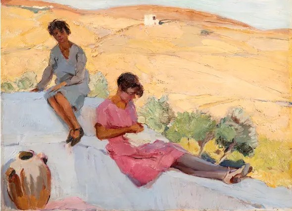 Αυξημένο ενδιαφέρον προβλέπεται για μία από τις ωραιότερες ελαιογραφίες που έχουν εμφανιστεί σε δημοπρασία του Νικολάου Λύτρα (1883-1927), «Στην ταράτσα, Νησί της Τήνου» (70.000-100.000 ευρώ), ζωγραφισμένο περίπου το 1923 με 1926, ένα από τα είκοσι έργα που παρουσίασαν το έργο του καλλιτέχνη στη Μπιενάλε της Βενετίας του 1936. Το δυναμικό αυτό τοπίο της Τήνου με τις δύο καθιστές γυναίκες σε πρώτο πλάνο, που ανακαλύφθηκε πρόσφατα σε σημαντική ιδιωτική συλλογή της Αθήνας, χαρακτηρίζεται από ζωντανά χρώματα, γρήγορες πινελιές και έντονες αντανακλάσεις του φωτός.