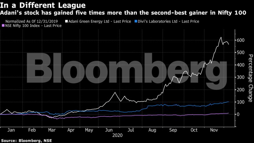 Η αξία των μετοχών της Adani Green έχουν έχει επιδείξει αύξηση κατά 562% το 2020, σε σχέση με το πενιχρό 10% του δείκτη της χώρας, National Stock Exchange 100 Index. To ράλι αυτό οδήγησε και στην είσοδο της Adani στον δείκτη MSCI India.