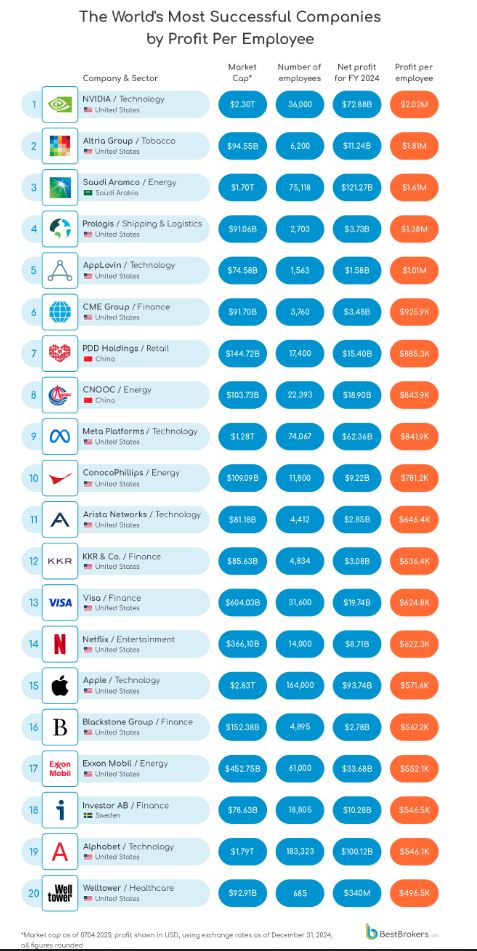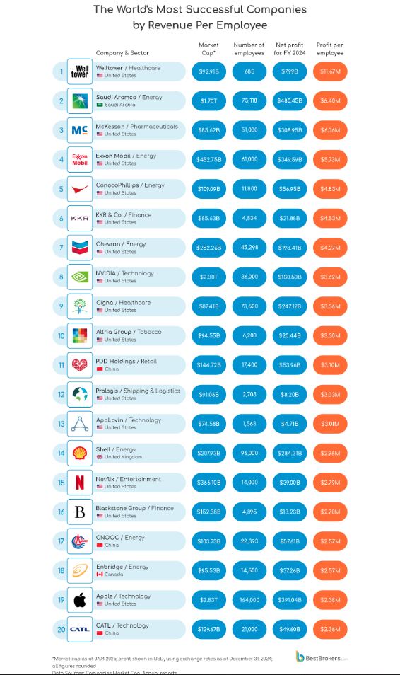 Οι πιο πολύτιμες εταιρείες στον κόσμο με βάση το κέρδος ανά εργαζόμενο