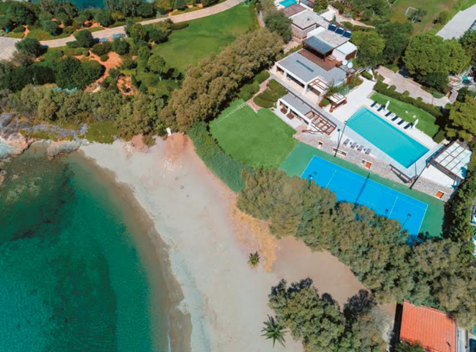 Το κτήμα μέσα στο οποίο βρίσκεται η πολυτελής κατοικία έχει εμβαδόν 8.000 τ.μ., είναι διαμορφωμένο με γκαζόν, πολύχρωμα λουλούδια και ψηλά δέντρα. Υπάρχει μία μεγάλη κεντρική πισίνα με σκεπαστούς καθιστικούς χώρους, γήπεδο του τένις και mini soccer, ενώ μία πόρτα στην άκρη του κήπου οδηγεί απευθείας στην αμμουδιά, αν και στην παραλία υπάρχει πρόσβαση και για τους λουόμενους της περιοχής. Σύμφωνα με την αγγελία, η αντικειμενική αξία της βίλας ανέρχεται στο ποσό των 1.538.000 ευρώ.