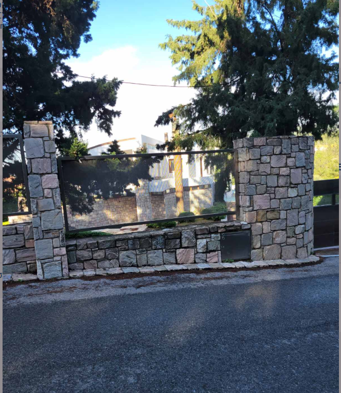 Ακόμη, το γήπεδο είναι πλήρως περιφραγμένο με περίφραξη από τοιχίο μπετόν με επένδυση πέτρας και μεταλλικά στοιχεία. Ο περιβάλλων χώρος είναι διαμορφωμένος με παρτέρια με φυτεύσεις, πλακόστρωτα, διαδρόμους, κολυμβητική δεξαμενή επιφάνειας 100 τ.μ. και βραχόκηπους.