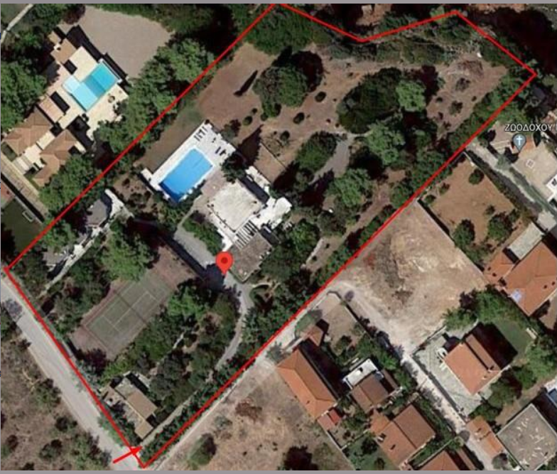 Επί του γηπέδου επιφάνειας 7.430,99 τ.μ. βρίσκονται δύο συνενωμένες με πέργκολα ισόγειες κατοικίες με τα υπόγεια τους, ένα βοηθητικό κτίσμα σήμερα διαμορφωμένο σε κατοικία, πισίνα, γήπεδο (μπάσκετ και τένις) και στεγασμένες θέσεις στάθμευσης. Στο γήπεδο επιφάνειας 1.144,00 τ.μ., υπάρχει συγκρότημα κατοικιών το οποίο αποτελείται από 3 ισόγεια διαμερίσματα.