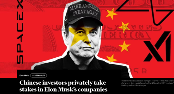 Τρεις Κινέζοι διαχειριστές περιουσιακών στοιχείων αποκάλυψαν στους Financial Times ότι την τελευταία διετία πούλησαν σε Κινέζους επενδυτές μετοχές άνω των 30 εκατομμυρίων δολαρίων στις SpaceX, xAI και Neuralink.