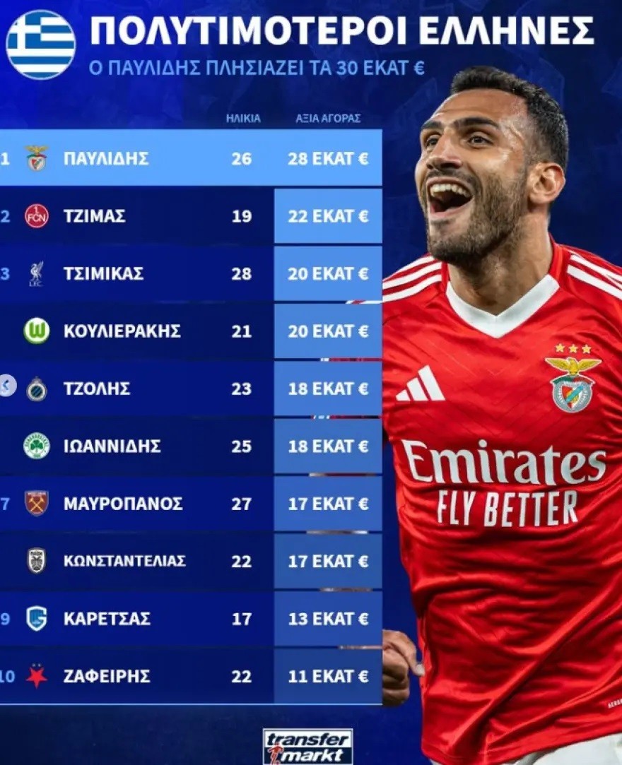 Στους πιο ακριβοπληρωμένους Ελληνες ποδοσφαιριστές