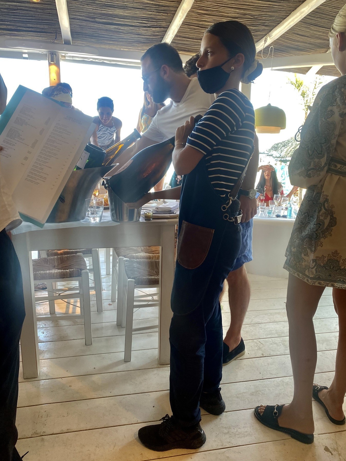 Το νησί έχει απίστευτα πολύ κόσμο, τουλάχιστον εκατόν πενήντα χιλιάδες τουρίστες και περίπου πενήντα χιλιάδες εργαζόμενους με τους πρώτους να θέλουν να τα δώσουν όλα και τους δεύτερους να λιώνουν στην δουλειά αλλά και στα tips.