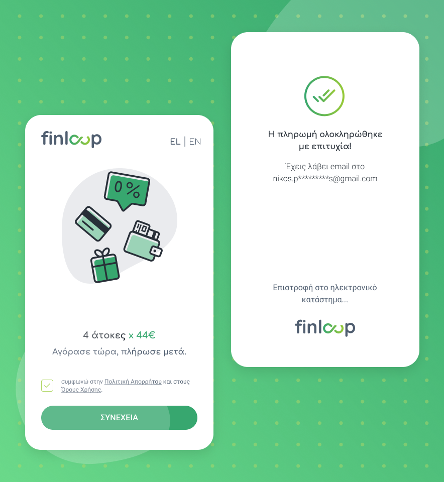 Συγκεκριμένα για το θέμα της πίστωσης, η finloup στοχεύει στο να δώσει δύναμη στα χέρια του καταναλωτή, όχι να υποκαταστήσει τα τραπεζικά προϊόντα. Αυτό γίνονται ακόμα πιο έντονο σε μικρά ποσά, τα οποία οι τράπεζες παραδοσιακά δεν καλύπτουν με καταναλωτικά δάνεια. Εάν υπάρχει ένα αντικείμενο που λειτουργούμε ανταγωνιστικά, είναι το κομμάτι της πιστωτικής κάρτας, ακριβώς γιατί είναι ένα “τοξικό” προϊόν το οποίο θέλουμε να εξαλείψουμε. Υψηλά επιτόκια, χρέος που συσσωρεύεται, κόστος συνδρομής. Όλα αυτά τα αφήνουμε πίσω μας, προσφέροντας την Buy Now Pay Later υπηρεσία μας χωρίς καμία επιβάρυνση. Ακόμα και οι χρήστες που έχουν πιστωτική κάρτα όμως, μπορούν να χρησιμοποιούν τη finloup -τους συμφέρει- και να διατηρούν το πιστωτικό τους όριο ανέγγιχτο για μία στιγμή έκτακτης ανάγκης.»