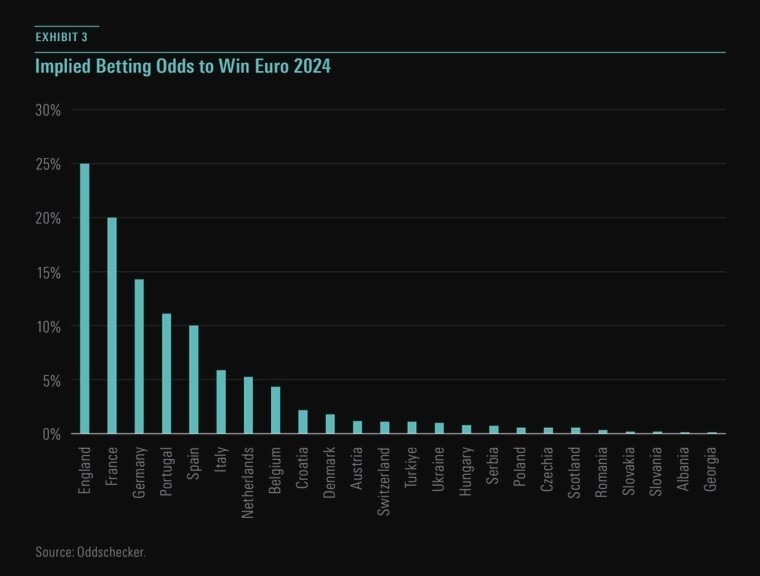 Με βάση τις τρέχουσες στοιχηματικές αποδόσεις, η Αγγλία, η Γαλλία, η Γερμανία και η Πορτογαλία έχουν τις περισσότερες πιθανότητες να κερδίσουν το τουρνουά. Τρεις από αυτές τις ομάδες (Αγγλία, Γαλλία και Πορτογαλία) φέρουν το λογότυπο της Nike. Ως εκ τούτου, όπως αναφέρει η Morningstar DBRS, η Nike έχει τις περισσότερες πιθανότητες να έχει μία ή ακόμη και δύο ομάδες στον τελικό, προσελκύοντας περίπου 300 εκατομμύρια και πλέον «βλέμματα» στο λογότυπό της.