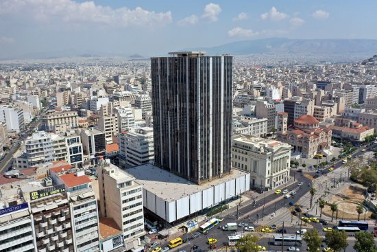 Τελικά ο Πύργος ανεγέρθη μέσα στη διετία 1972 – 1974, επί Αριστείδη Σκυλίτση πάντοτε. Αρχιτέκτονες ήταν οι Ι. Βικέλα, Γ. Μολφέση και Α. Λοϊζου. Το 1983 πήρε την οριστική του μορφή με την επένδυση των εξωτερικών επιφανειών του με γυαλί και μεταλλικά ελάσματα.