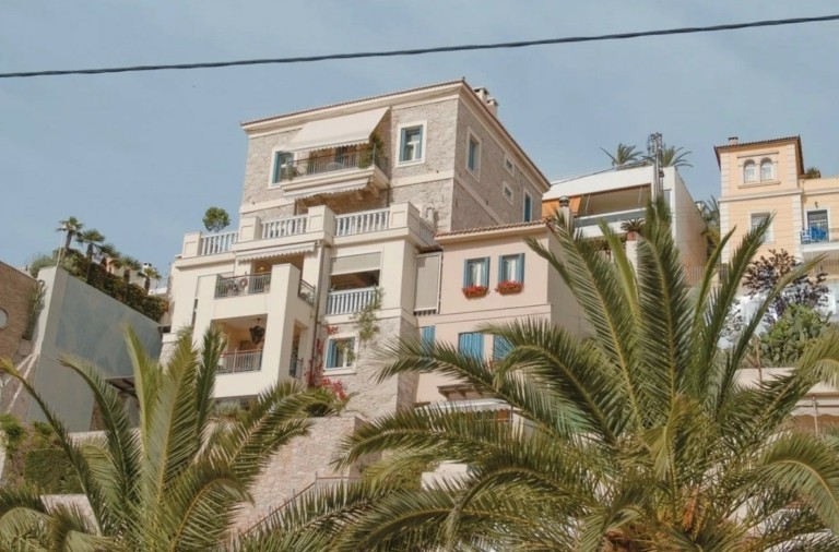 Κατά την έκθεση, «η οικοδομή αυτή είναι συμβατικής κατασκευής με φέροντα οργανισμό από οπλισμένο σκυρόδεμα και οργανισμό πλήρωσης από οπτοπλινθοδομή. Έχουν χρησιμοποιηθεί υλικά όπως πέτρα και μάρμαρο, είναι καλής αισθητικής, ενώ διαθέτει ανεπρόκοπτη θέα προς το Σαρωνικό κόλπο». Και σε αυτή την περίπτωση, το ακίνητο κουβαλάει αρκετές προσημειώσεις, υποθήκες και κατασχέσεις.