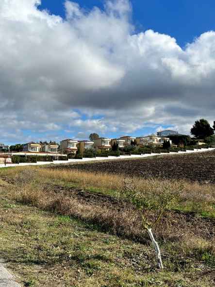 Το αγροτεμάχιο είναι περιφραγμένο με τοιχίο από οπλισμένο σκυρόδεμα και μεταλλικό κιγκλίδωμα. Αριστερά της εισόδου εκτείνονται τα στέγαστρα των θέσεων στάθμευσης, οι οποίες είναι αριθμημένες. Στη δυτική πλευρά του γηπέδου υπάρχει διαμορφωμένος χώρος με βραχόκηπους σε κάθε αναβαθμό του εδάφους μεταξύ των πέντε κατοικιών, ειδικό φωτισμό για το βράδυ και σύστημα αυτόματης άρδευσης.
