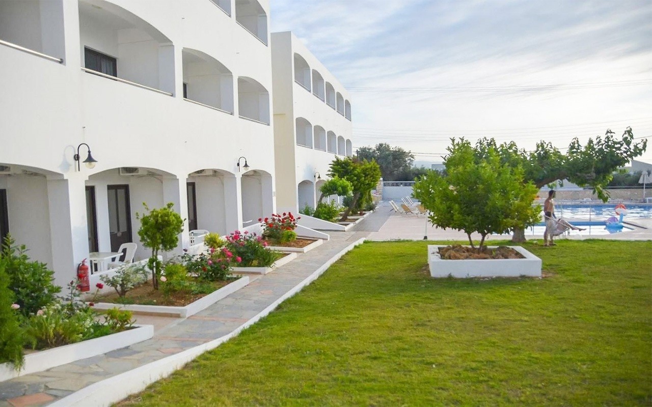 Αναπτύσσεται σε δύο όμορα γεωτεμάχια επιφάνειας 5.086 τ.μ. και 836,19 τ.μ.που αποτελούν ένα ενιαίο οικονομικό σύνολο, σε απόσταση 1 χλμ. περίπου νότια από την παραλία. Εντός αυτών έχει ανεγερθεί ξενοδοχειακό συγκρότημα συνολικής επιφάνειας περίπου 3.850,,78 τ.μ., το οποίο απαρτίζεται από την κεντρική μονάδα και 14 κτήρια δωματίων.