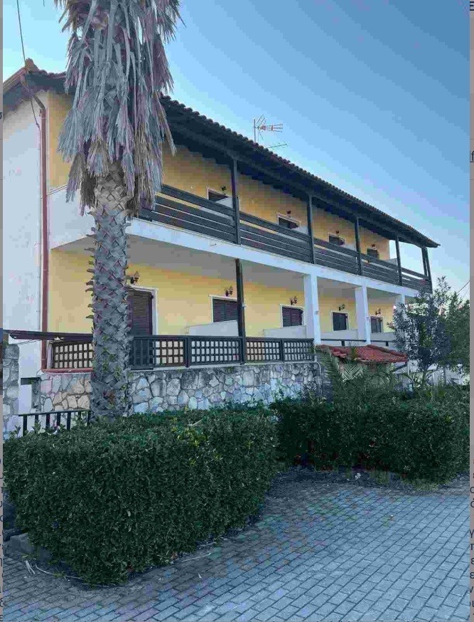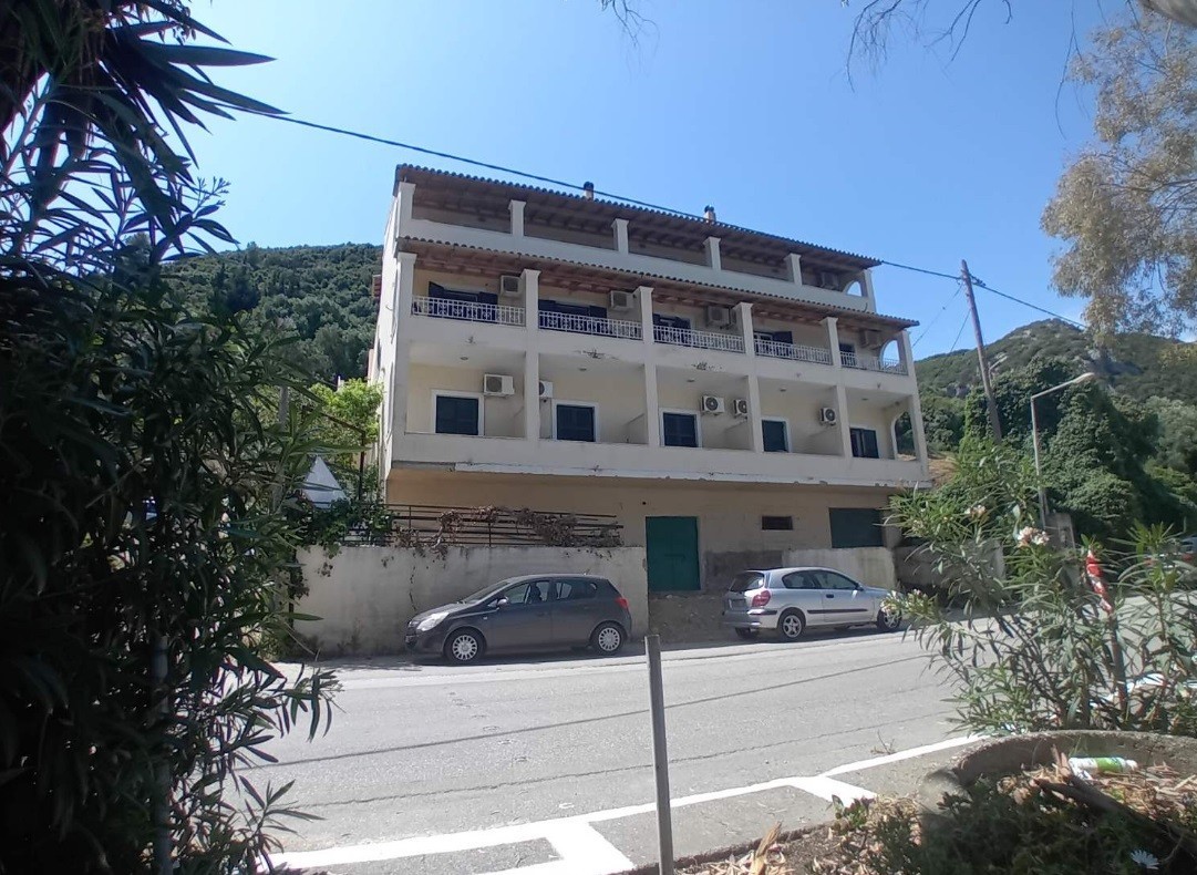 Το κτήριο αποτελείται από υπόγειο 120,36 τ.μ., ισόγειο 120.36 τ.μ., Α΄όροφο 27,20 τ.μ. Με βάση ωστόσο προηγούμενη έκθεση αποτελείται από υπόγειο 200 τ.μ. περίπου, ισόγειο 200τ μ. περίπου και Α’ όροφο 200 τ.μ. περίπου. Όπως σημειώνεται, φαίνεται ότι το υπόγειο λόγω και της κλίσης εδάφους, έχει κατασκευαστεί με τέτοιο τρόπο ώστε είναι στο επίπεδο του εδάφους από τις 3 πλευρές και έχει διαμορφωθεί και αυτό ως διαμερίσματα. Θεωρείται κατηγορίας 3 κλειδιών με 18 δωμάτια (36 κλίνες) και λειτουργεί την υψηλή τουριστική περίοδο από μέσα Απριλίου έως το πρώτο εικοσαήμερο του Οκτωβρίου, με χαμηλό κόστος προσωπικού και χωρίς πολλές παροχές. Η τιμή πρώτης προσφοράς είναι στις 538.000 ευρώ.