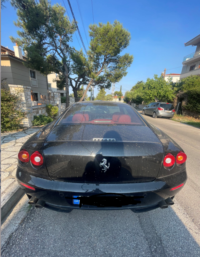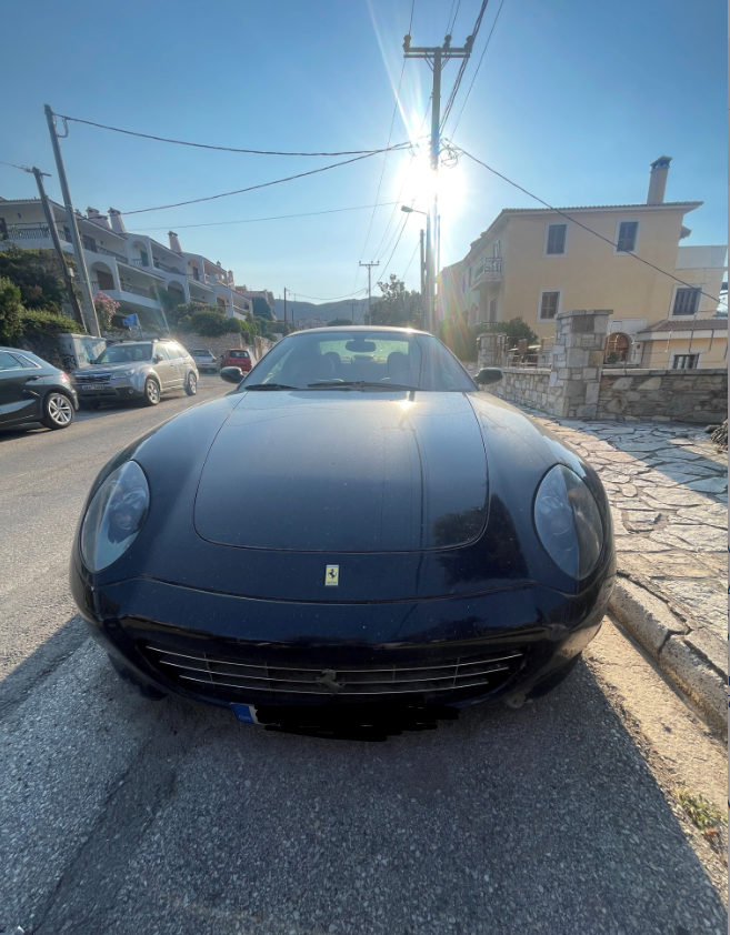 Όπως αποκάλυψε το newmoney στις 15 Ιανουαρίου, πρόκειται για μια Ferrari 612 Scaglietti, μαύρου χρώματος που κατασχέθηκε λόγω χρεών του ιδιοκτήτη της και βρίσκεται σε σχεδόν άριστη κατάσταση. Κατά τη σχετική περιγραφή στην κατασχετήρια έκθεση «το αυτοκίνητο δεν φέρει χτυπήματα και γρατζουνιές πλην μιας γρατζουνιάς στην πόρτα του συνοδηγού και υπάρχει το κλειδί του. Το σαλόνι του αυτοκινήτου είναι σε άριστη κατάσταση, δερμάτινο, χρώματος κόκκινου». Ακόμη διευκρινίζεται ότι «υπάρχει το book της Ferrari και όχι η άδεια κυκλοφορίας. Δεν υπήρχαν κινητά πράγματα εντός αυτής. Δεν είχε μπαταρία και δεν υπάρχει γνώση των χιλιομέτρων»…