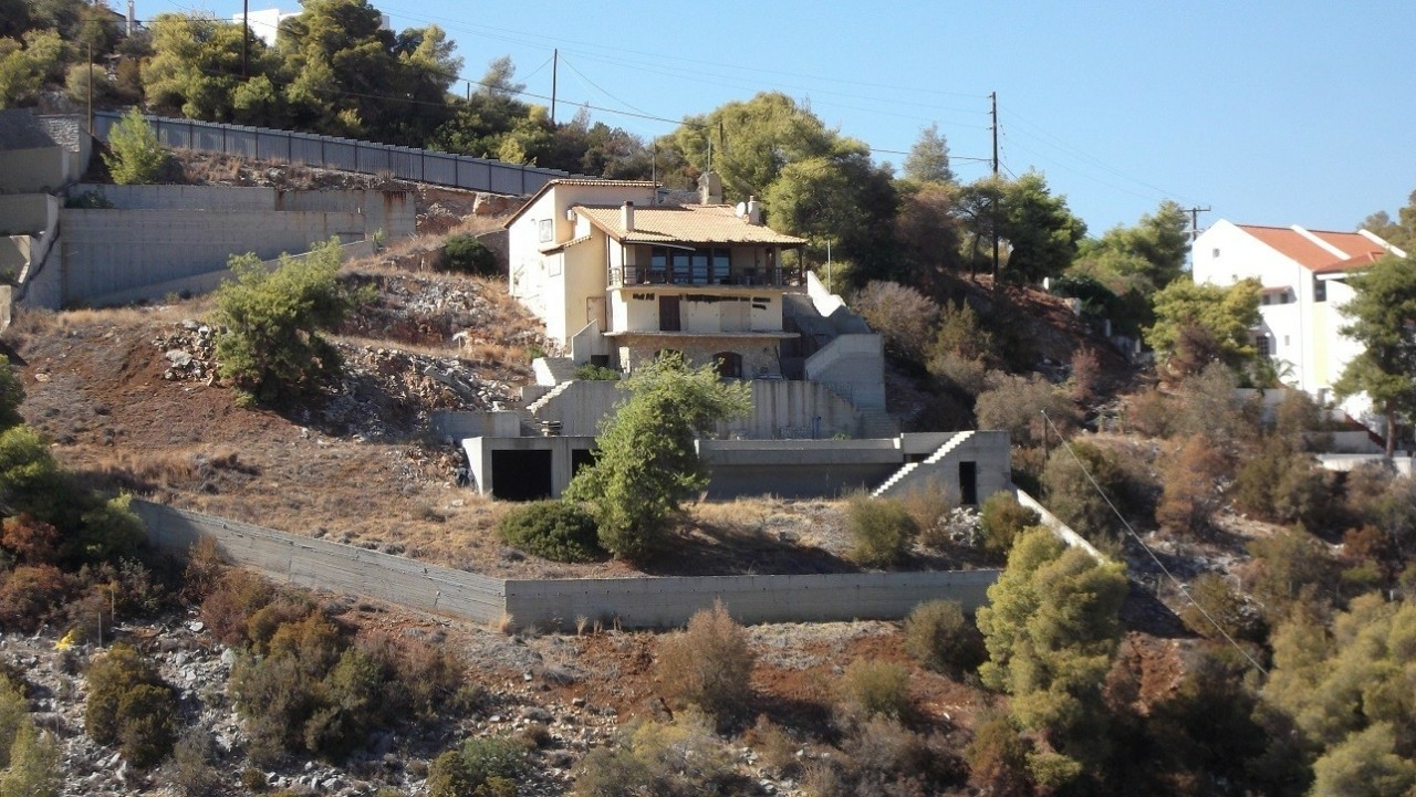 Πρόκειται για ένα οικόπεδο, άρτιο και οικοδομήσιμο, έκτασης 1.242 τ.μ. και εντός αυτού υφίσταται διώροφη οικοδομή 181,12τ.μ. (με σοφίτα, ισόγειο και ημιυπόγειο), ενώ στο περιβάλλοντα χώρο υπάρχει πισίνα, η οποία δεν έχει ολοκληρωθεί και βρίσκεται στα μπετά. Από τα τέλη του 2009 η κατοικία ήταν στο τελικό στάδιο πλήρους εσωτερικής ανακαίνισης.