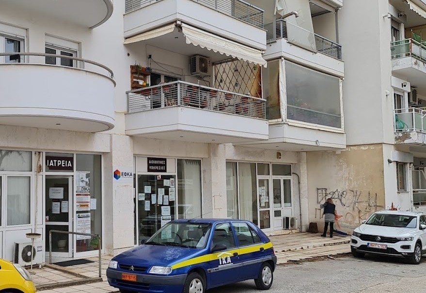 - Ένα αυτοτελές και διαιρετό κατάστημα του ισογείου, με πρόσοψη επί της οδού Στρατή Μυριβήλη, αποτελούμενο από έναν ενιαίο χώρο, όπου στεγάζονται χώροι ιατρείων, χώροι αναμονής και διοικητικών υπηρεσιών του ΙΚΑ και πέντε W.C. εξυπηρετήσεως κοινού, προσωπικού και ιατρών του ΙΚΑ. Το κατάστημα είναι συνολικού εμβαδού 614,37 τ.μ. και η τιμή πρώτης προσφοράς έχει οριστεί σε 380.000 ευρώ.