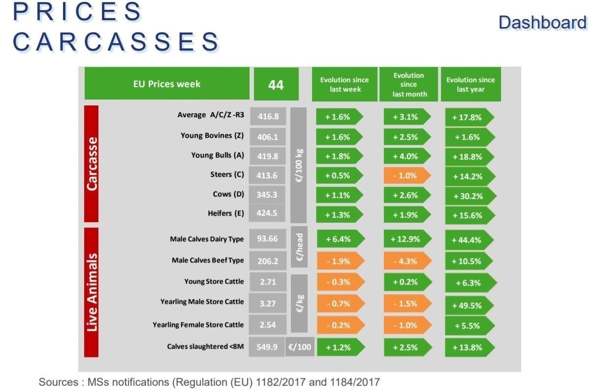 Παρατηρώντας τα γραφήματα της Ευρωπαϊκής Επιτροπής για την εξέλιξη των τιμών κρέατος παρατηρούμε ότι η Ελλάδα διαφοροποιείται, κυρίως το 2020, αν και το 2021 οι αυξήσεις πέρασαν και στην χώρα μας.