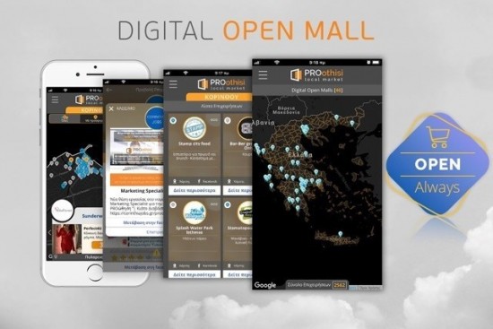 Τα market places (e shops) όσων καταστημάτων διαθέτουν e shops, αλλά και όλα αυτά που δεν διαθέτουν, προβάλλονται μέσα από ένα ψηφιακό οικοσύστημα από πολλές επιμέρους εφαρμογές (applications) συνδεδεμένες μεταξύ τους όπως Digital Signages, smart phone applications, web applications…