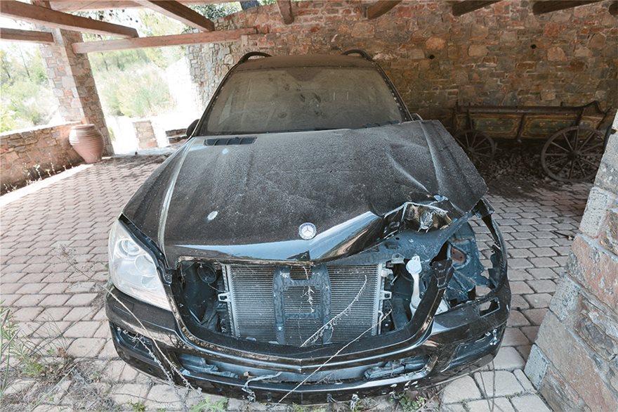 Στο πάρκινγκ του σπιτιού σκονισμένη και γεμάτη αράχνες η πολυτελής Mercedes που χρησιμοποιούσε το αφεντικό της Marfin στους κακοτράχηλους δρόμους γύρω από το κτήμα
