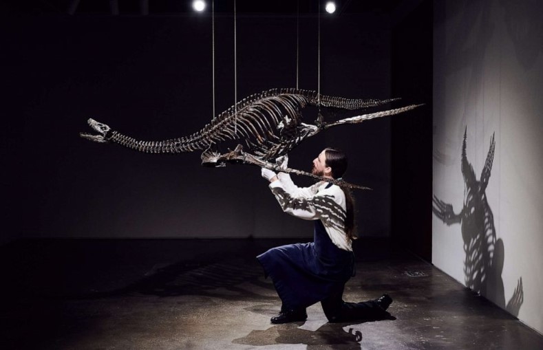 Πρόκειται για τους απολιθωμένους σκελετούς ενός πτερανόδοντα, ενός ιπτάμενου ερπετού που χαρακτηρίζεται ως ένα από τα μεγαλύτερα και πιο επικίνδυνα είδη της εποχής των δεινοσαύρων κι ενός πλησιόσαυρου, ήτοι ενός θαλάσσιου αρπακτικού της οικογένειας των σαυροπτερύγιων.