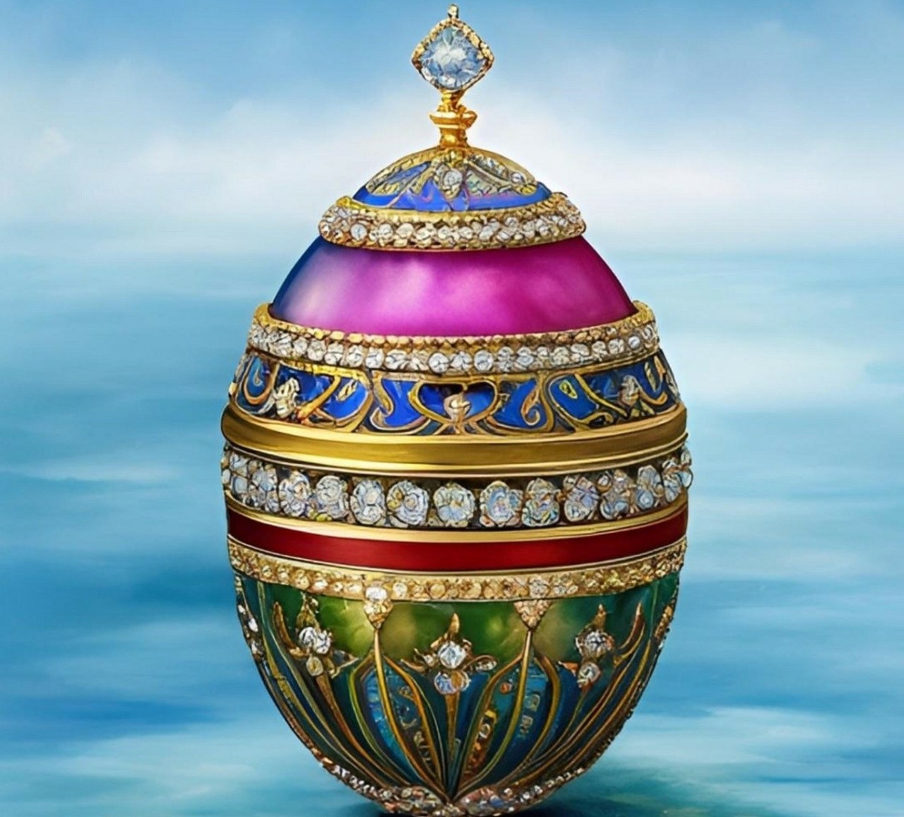 Η χρυσή βάση στην οποία στηρίζεται, είναι διακοσμημένη με διαμάντια, όπως και το κλειδί με το οποίο ανοίγει. Ορισμένοι εμπειρογνώμονες αμφισβήτησαν την αυθεντικότητά του όταν ο Ιβανόφ το απέκτησε στη Γαλλία το 1995, δεδομένου ότι δεν ήταν καταχωρισμένο στον κατάλογο των αυγών τον οποίο τηρούσε ο Φαμπερζέ και η ύπαρξή του ήταν άγνωστη μέχρι τότε. Ωστόσο ο Ρώσος αγοραστής, ανακάλυψε έγγραφα στα κρατικά αρχεία της χώρας του, με τα οποία αποδείχθηκε τελικά η αυθεντικότητά του.