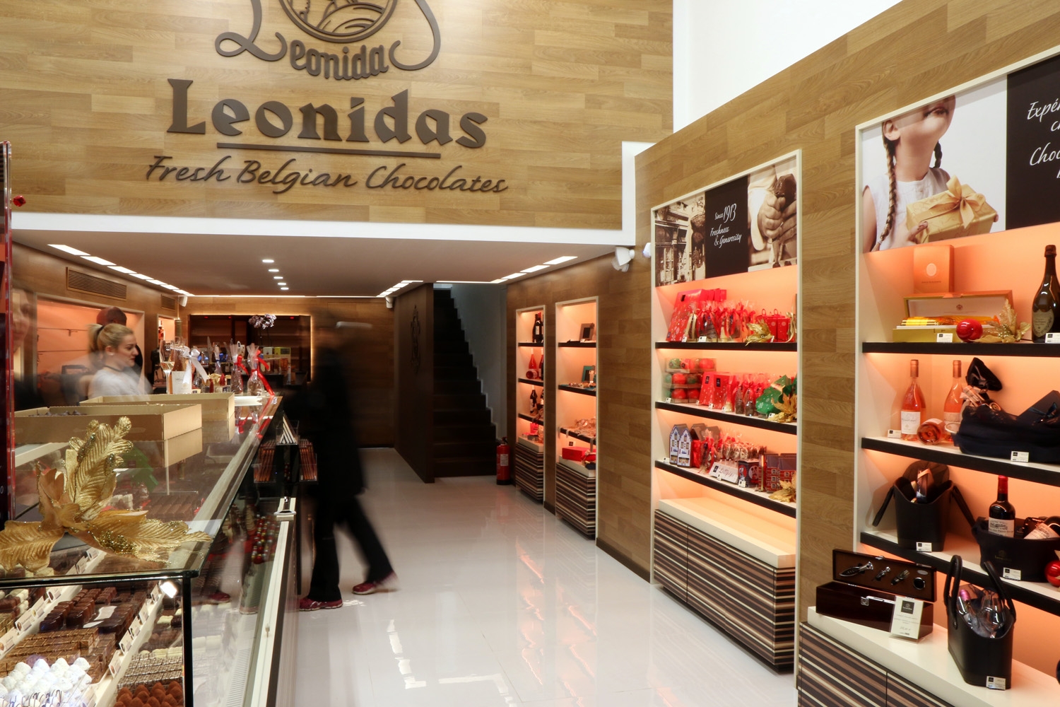 Στην Ελλάδα το πρώτο κατάστημα βασίστηκε στην εταιρεία Αθηνά Ιωαννίδου – Pralines Leonidas και ιδρύθηκε το 1986 στην οδό Μιχαλακοπούλου. Η εταιρεία είναι εισαγωγέας-διανομέας της Confiserie Leonidas S.A. του Βελγίου. Το 1987 μεταφέρθηκε στο Κολωνάκι στην οδό Καψάλη 3. Τον Μάρτιο του 2009 η εταιρεία άνοιξε shop in a shop στο «attica» του «Golden Hall» και τον Σεπτέμβριο του 2011 νέο κατάστημα στο Νέο Ψυχικό. Aνάλογα καταστήματα έχουν ανοίξει σε πολλές περιοχές όπως στον Πειραιά, στη Γλυφάδα κ.ά.