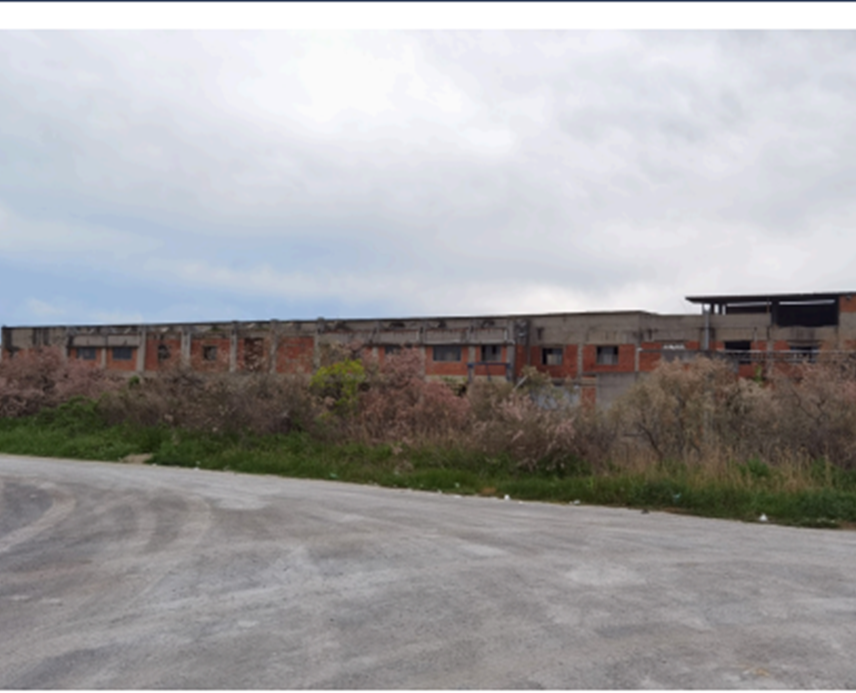 -Εργοστάσιο-ισόγειος χώρος παραγωγής επιφάνειας 10.368 τ.μ. από σκελετό οπλισμένου σκυροδέματος, με στοιχεία πλήρωσης από οπτοπλινθοδομή, κελυφωτή πλάκα οροφής, μεταλλικά κουφώματα και βιομηχανικό δάπεδο.
